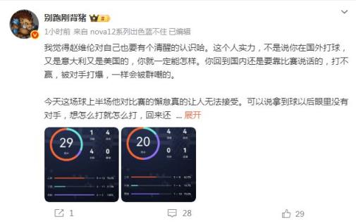 不過(guò)針對(duì)趙維倫在比賽中的表現(xiàn),媒體人別跑剛背豬通過(guò)社媒給出嚴(yán)厲的批評(píng):“我覺(jué)得趙維倫對(duì)自己也要有個(gè)清醒的認(rèn)識(shí)哈。這個(gè)人實(shí)力,不是說(shuō)你在國(guó)外打球,又是意大利又是美國(guó)的,你就一定能怎樣。你回到國(guó)內(nèi)還是要靠比賽說(shuō)話的,打不贏,被對(duì)手打爆,一樣會(huì)被群嘲的。