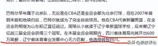媒體人付政浩點(diǎn)評(píng)周琦轉(zhuǎn)投道四川男籃的話題做出更多細(xì)節(jié)爆料,周琦從小就讀于遼寧阜新籃球?qū)W校,后來(lái)替遼寧征戰(zhàn)三屆全運(yùn)會(huì)獲得三個(gè)冠軍。