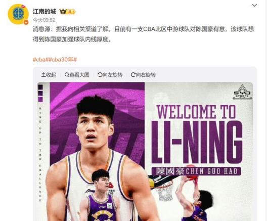 近日據媒體人導演透露,目前CBA聯(lián)盟中有5支球隊有意陳國豪,可見有實力的球員是不愁下架的。傳聞就有垂涎三尺的廣東宏遠,以及已在補強的山東男籃。而相比廣東,山東男籃應該是陳國豪的最佳下家。