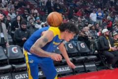 賽前熱身環(huán)節(jié),勇士球員蓋-桑托斯大秀巴西人的足球天賦,一套花式足球動作后三分穩(wěn)穩(wěn)命中,足籃兩開花。