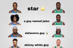 明星球員、一個(gè)叫杰倫的家伙、防守悍將、白人內(nèi)線、禿頂白人球員