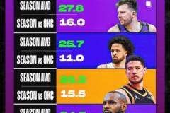 04月07日訊 NBA常規(guī)賽,湖人126-99擊敗雷霆,此前數(shù)據(jù)表示詹姆斯、東契奇、米切爾等球星打雷霆場(chǎng)均降10分。