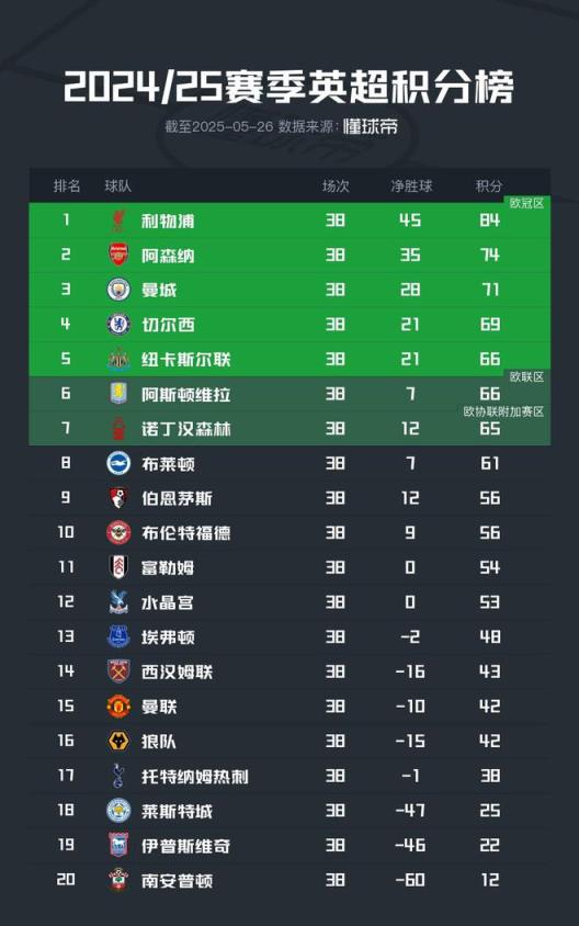 2024-25賽季英超聯(lián)賽最終結(jié)局