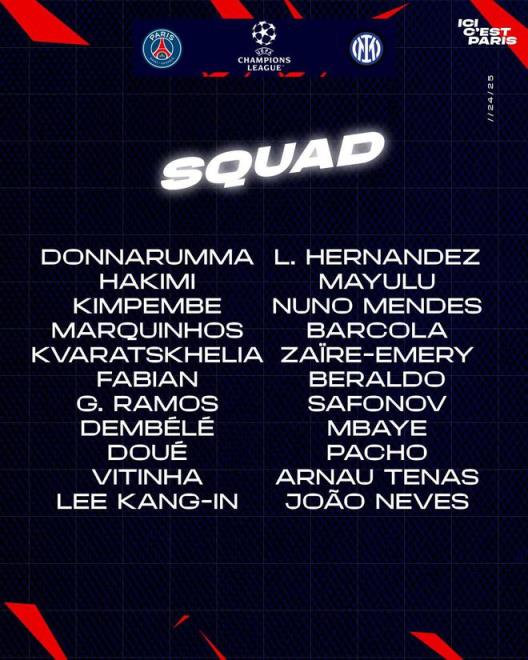 奧斯曼-登貝萊、克瓦拉茨赫利亞、貢薩洛-拉莫斯、杜埃、巴爾科拉、易卜拉欣-姆巴耶