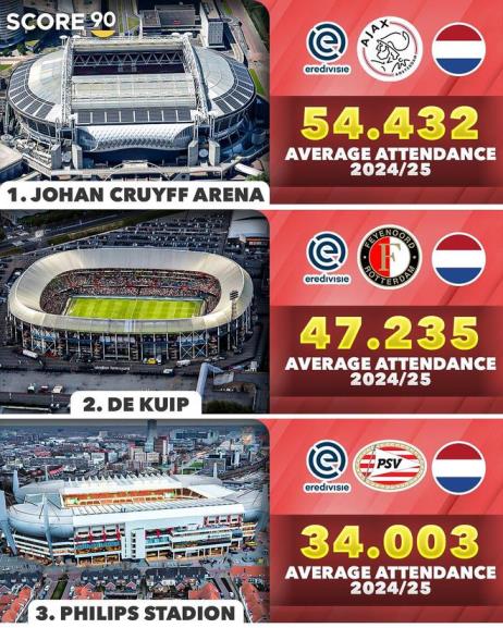 阿賈克斯(54432)、費耶諾德(47235)、埃因霍溫(34003)