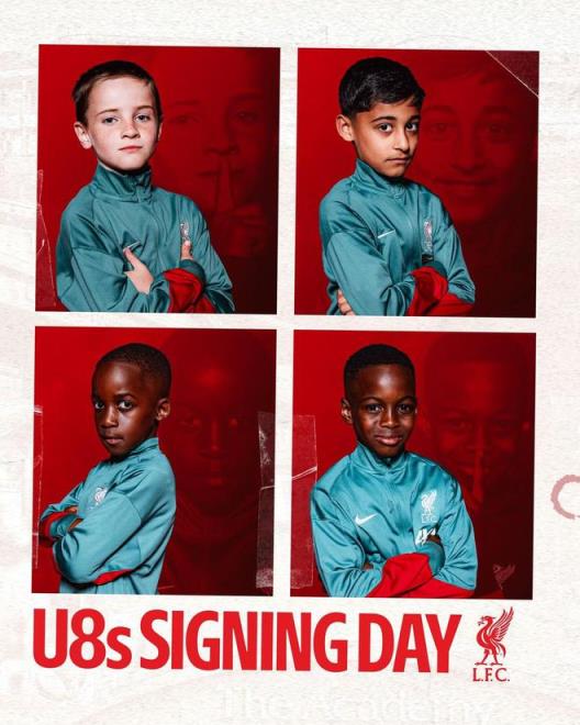 北京時(shí)間6月12日,利物浦更新官方社媒,分享了一組U8梯隊(duì)新援的定妝照。