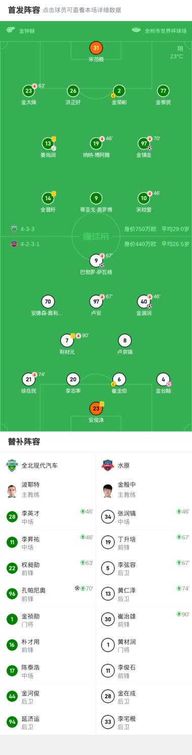 北京時間6月17日,韓國經(jīng)典K聯(lián)賽第19輪,全北現(xiàn)代汽車主場迎戰(zhàn)水原。比賽中,水原由金渡潤率先建功,隨后巴勃羅-薩瓦格擴大領(lǐng)先優(yōu)勢。全北現(xiàn)代汽車 反擊,金鎮(zhèn)圭和孔帕尼奧相繼取得進(jìn)球?qū)⒈确职馄?,最后時刻水原的金臺翰不慎自擺烏龍。最終,全北現(xiàn)代汽車以3-2戰(zhàn)勝水原FC。