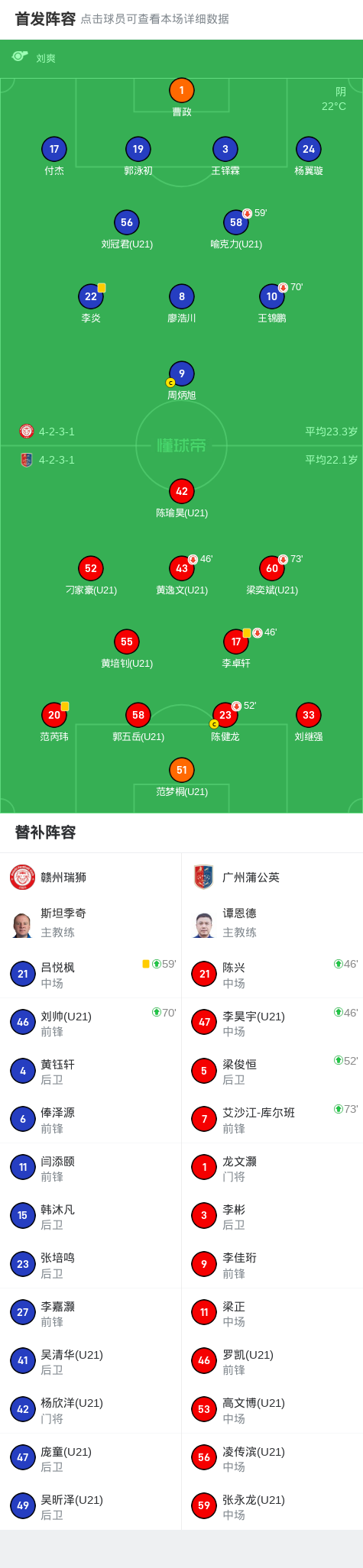 北京時(shí)間5月25日,中國(guó)足球乙級(jí)聯(lián)賽預(yù)賽階段第11輪,贛州瑞獅主場(chǎng)迎戰(zhàn)廣州蒲公英。全場(chǎng)比賽雙方均未能取得進(jìn)球,最終以0-0的比分握手言和。