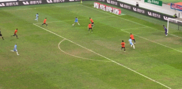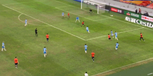 比賽進(jìn)程上半場補(bǔ)時第2分鐘,金永浩與蘭克爾-澤右路打出配合后傳中,買烏郎轉(zhuǎn)身打門被蹭了一下,林創(chuàng)益掃射破門,海牛1-0領(lǐng)先河南隊(duì)。
